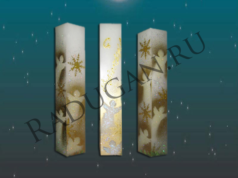 Свеча "С Рождеством"-2 Цена: 1560 руб. Грани: 56x56 мм Высота: 300 мм Вес: 1200 гр. Время горения: 180 часов Состав: парафин пищевой "П-2", пищевые и натуральные ароматизаторы и красители Цвет и аромат по выбору заказчика |