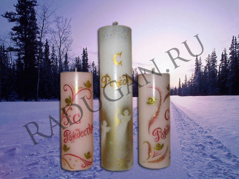 Свеча "С Рождеством"-3 Цена: 1650 руб. Диаметр: 94 мм Высота: 300 мм Вес: 2500 г Время горения: 250 ч Состав: парафин пищевой "П-2", пищевые и натуральные ароматизаторы и красители Цвет и аромат по выбору заказчика |