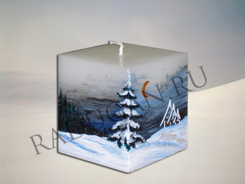 Свеча Новогодняя. Ручная роспись Цена: 520 руб. Грани: 10x10 см Вес: 500 г Время горения: 100 ч Состав: парафин пищевой "П-2", пищевые и натуральные ароматизаторы и красители. Цвет и аромат по выбору заказчика. |